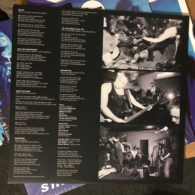A few months after “Shove,” L7 continued with recording the EP—later expanded into a full-length album with three cover songs (“Packin’ a Rod,” “Just Like Me,” and “American Society”). They recorded again with Reciprocal’s producer, Jack Endino, and later Michael James and Ramones-producer Daniel Rey in Los Angeles.
