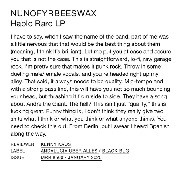 Nunofyrbeeswax – Hablo Raro LP. 2024 Berlin.