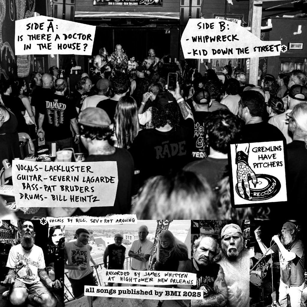 2026 New Orleans. Debut 3 Song 7" of Punk Rockin' Hardcore from New Orleans. Brand new for '26. These doods got all oiled up, conjured some 1986 thrash punk, and headed to catch some tasty waves in the 17th Street Canal. Boombox is loaded, and the buzz is on ice! Lackluster even gives Bill his Peter Criss moment from behind the kit, but it ain't Beth he hears callin'....Grab 'em now while they still a float! Sink no swim! Is there a doctor in the house? You give'em CPR....we ain't touchin' em! Features Severin Lagarde & Bill Heintz (both from the Pallbearers and other infamous NOLA acts), Pat Bruders (Down /Crowbar /Gasmiasma), and Dave Chandler (Saint Vitus) as Lackluster. 7" Includes Title Track and "Whipwreck" / "Kid Down The Street" on the B Side.