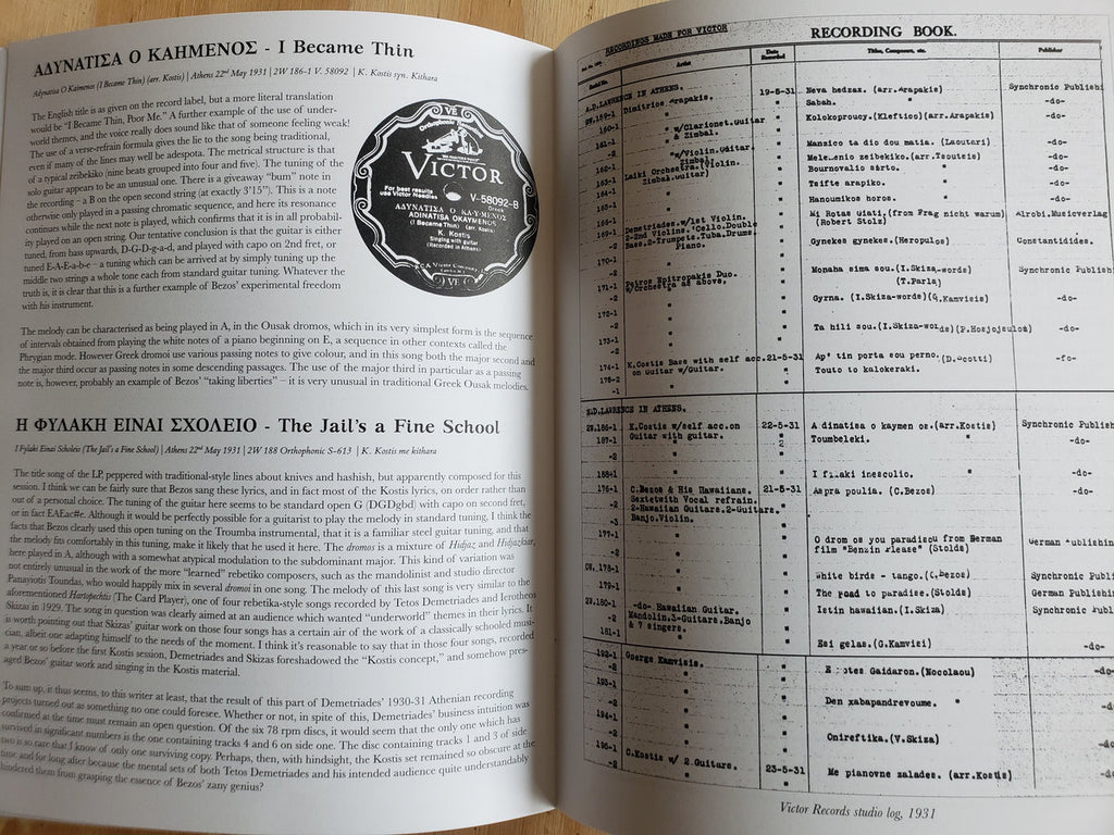 Recorded under a pseudonym for export to the Greeks living in America, research has uncovered the musician, journalist and cartoonist Kostas Bezos as the figure lurking behind the Kostis name, with ties to the famous singer Tetos Demetriades. Renowned for his slide guitar playing in Hawaiian-style orchestras throughout the 1930s, the Kostis recordings reveal an entirely different underworld of the macabre and illicit. The use of guitar in these now-classic rebetika songs display a virtuosity of finger-picked Near-Eastern modes and unusual tunings at the dawn of rebetika, when the bouzouki was yet to become supreme.