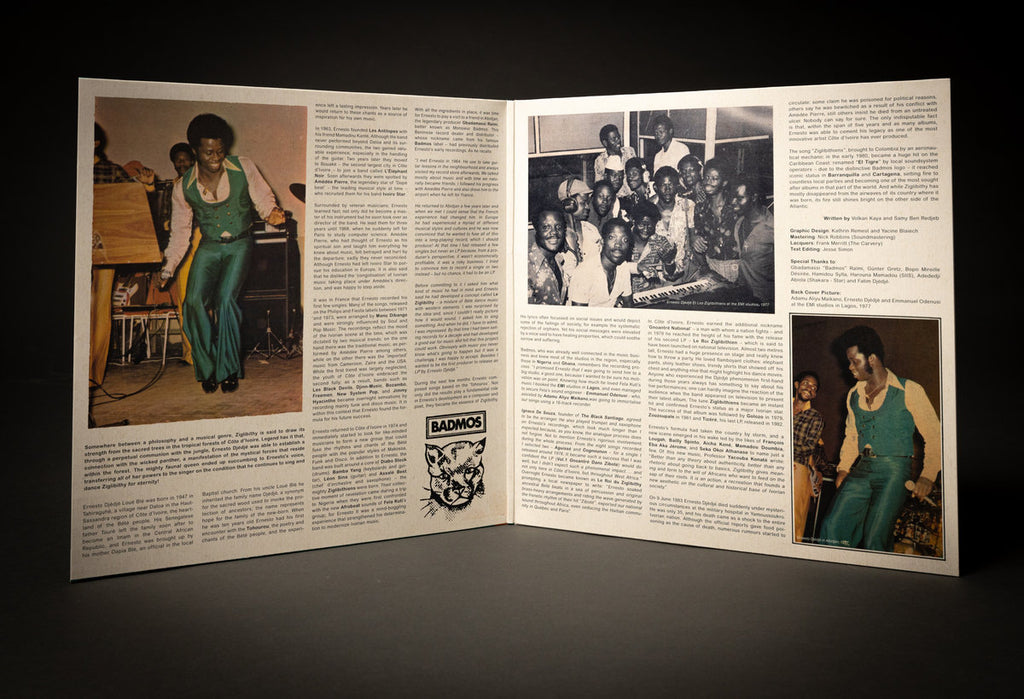 Returning to Côte d'Ivoire in 1974 Ernesto began looking for like minded musicians to form the mighty “Ziglibithiens”. Diabo Steck (drums), Bamba Yang (keyboards & Guitar), Léon Sina (Guitar) and Assalé Best (chef d´orchestre and Saxophon) would become the core of the group and together with Ernesto they began thinking of ways of combining the rhythms and chants of the Bété people and fuse them with Makossa, Funk and Disco and create a musical style that was both Ivorian and International. He called his experiment Ziglibithy and his first two albums, immortalised at the EMI studios in 1977 in Lagos and released on the Badmos label, took West Africa by storm turning Ernesto Djédjé into an icon overnight and one of the legends of African music.