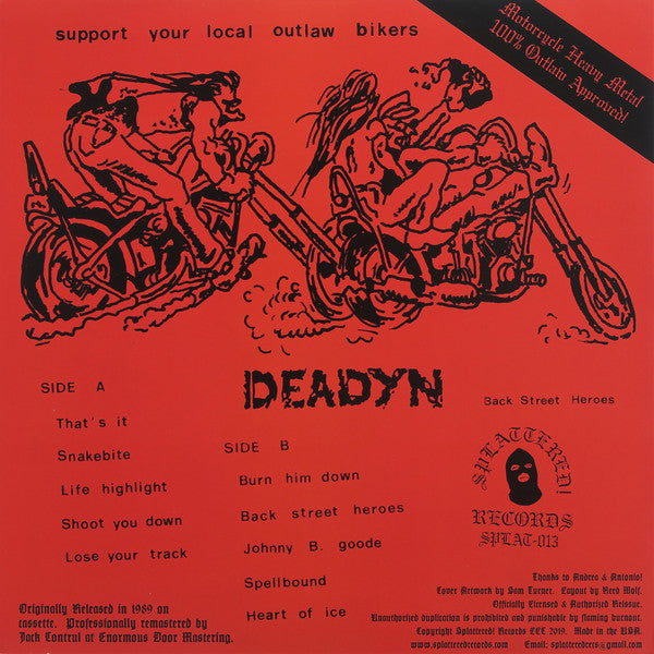 Deadyn - Back Street Heroes [RED VINYL 1989 Italian BIKER METAL Marked Down] - New LP