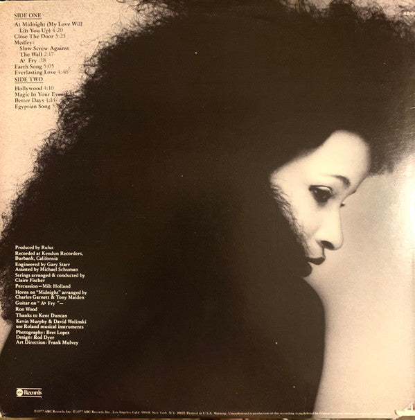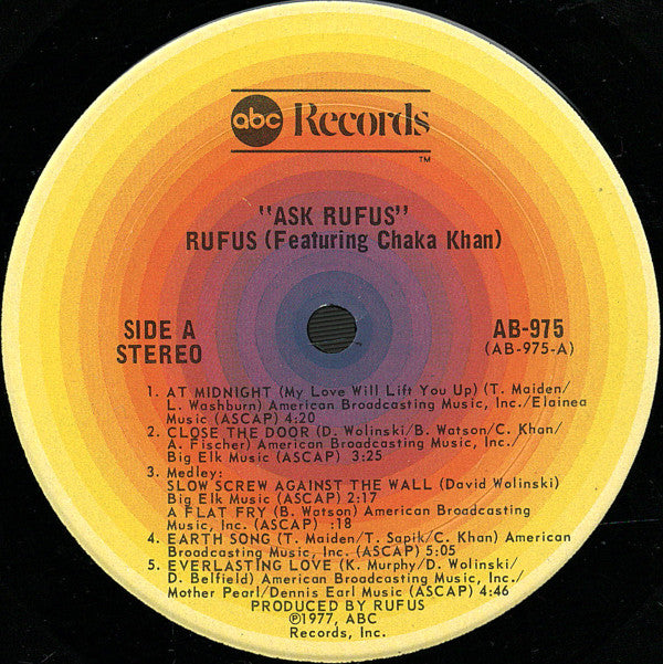 Rufus was one of the most respected groups in the '70s and '80s. Although lead singer Chaka Khan's charismatic vocals were their drawing card, few outfits boasted the skill as Rufus as a band. Songs like "Please Pardon Me," "Sweet Thing," and "Fool's Paradise" are a few of the tracks that displayed the perfect marriage. This 1977 effort is the follow-up to 1975's Rufus Featuring Chaka Khan. Ask Rufus has the group doing more sophisticated and constantly challenging work with an accent on evocative ballads. The effort's lone dance track "At Midnight (My Love Will Lift You Up)" has the band going for more subtlety. The jazzy "Close the Door" has a confident and gentle vocal from Khan and a beautiful string arrangement from Clare Fischer who offered them throughout this effort. The well-arranged "Earth Song" could be called botched poesy with lyrics like, "Stars what a mystical woman that you've made me," but Khan's charm keeps it from being an overstatement. The best track, the evocative and sensual "Everlasting Love" has great bass and guitar interplay from Bobby Watson and Tony Maiden, respectively, and an appealing earthy and ethereal vocal from Khan. The much loved "Hollywood" has just gotten stronger, with lines like, "Fixed expressions/Smiles worn thin" exhibiting a surprising and apropos world-weary view. The most ambitious song, the evocative "Egyptian Song," has Middle Eastern motifs and a compelling vocal from Khan that pulls it all together. With great keyboard signatures from Kevin Murphy and David "Hawk" Wolinski and Andre Fischer's steady and judicious drumming, Ask Rufus is one of their best albums.